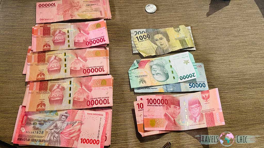 El tipo de cambio en Bali varía cada día, así que es mejor ir cambiando poco a poco en lugar de hacerlo todo de una vez. Yo cometí el error de cambiar 200 € de golpe el primer día y me dieron un fajo de billetes que ni me cabía en la cartera. Además, aunque siempre hay una pequeña comisión, si aprovechas los días con mejor cambio suele salir más a cuenta que pagar con tarjeta, donde las comisiones son todavía más altas.